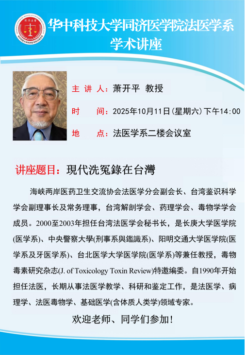 地址:湖北省武汉市硚口区航空路13号,同济医学院法医学系103室