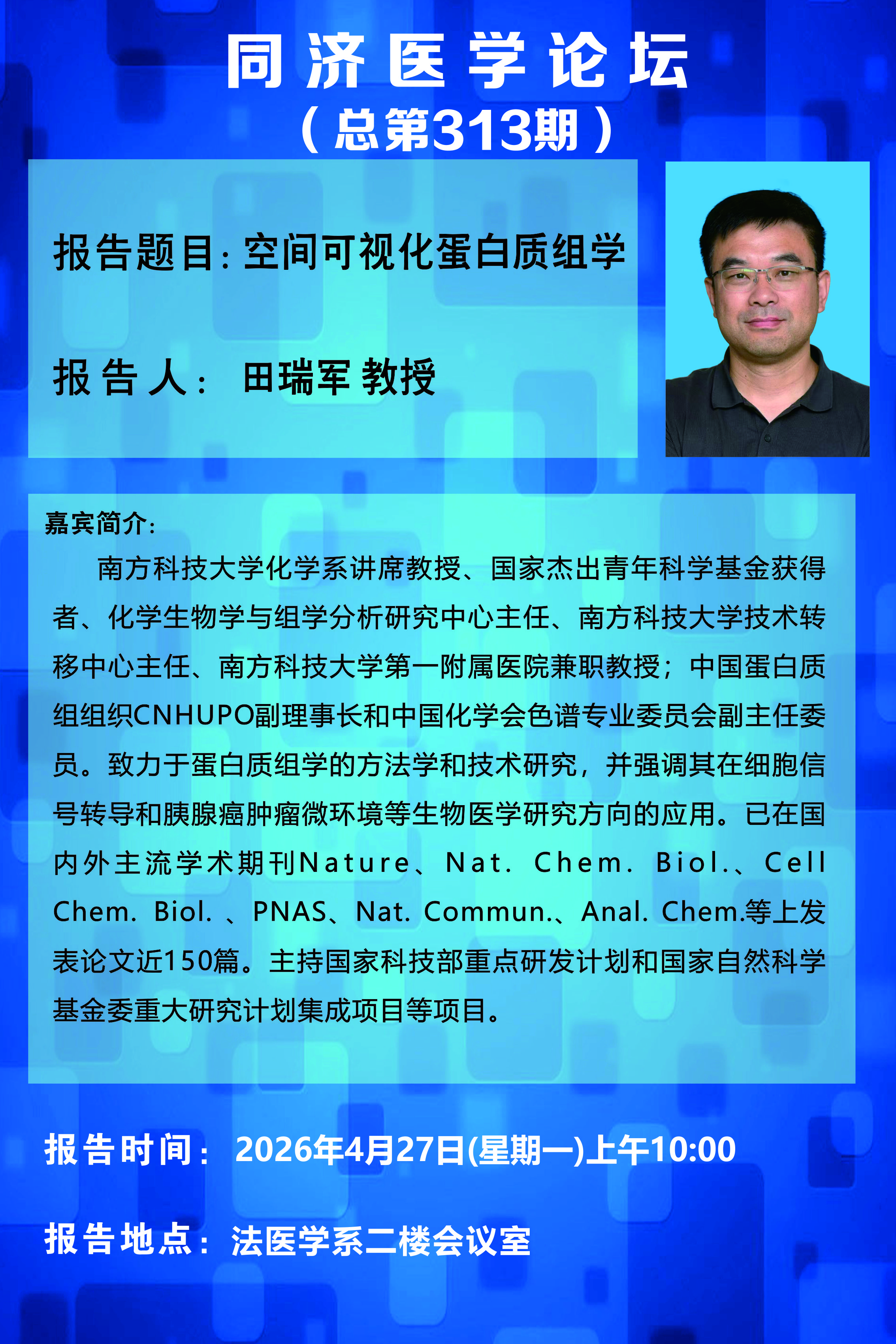 地址:湖北省武汉市硚口区航空路13号,同济医学院法医学系103室