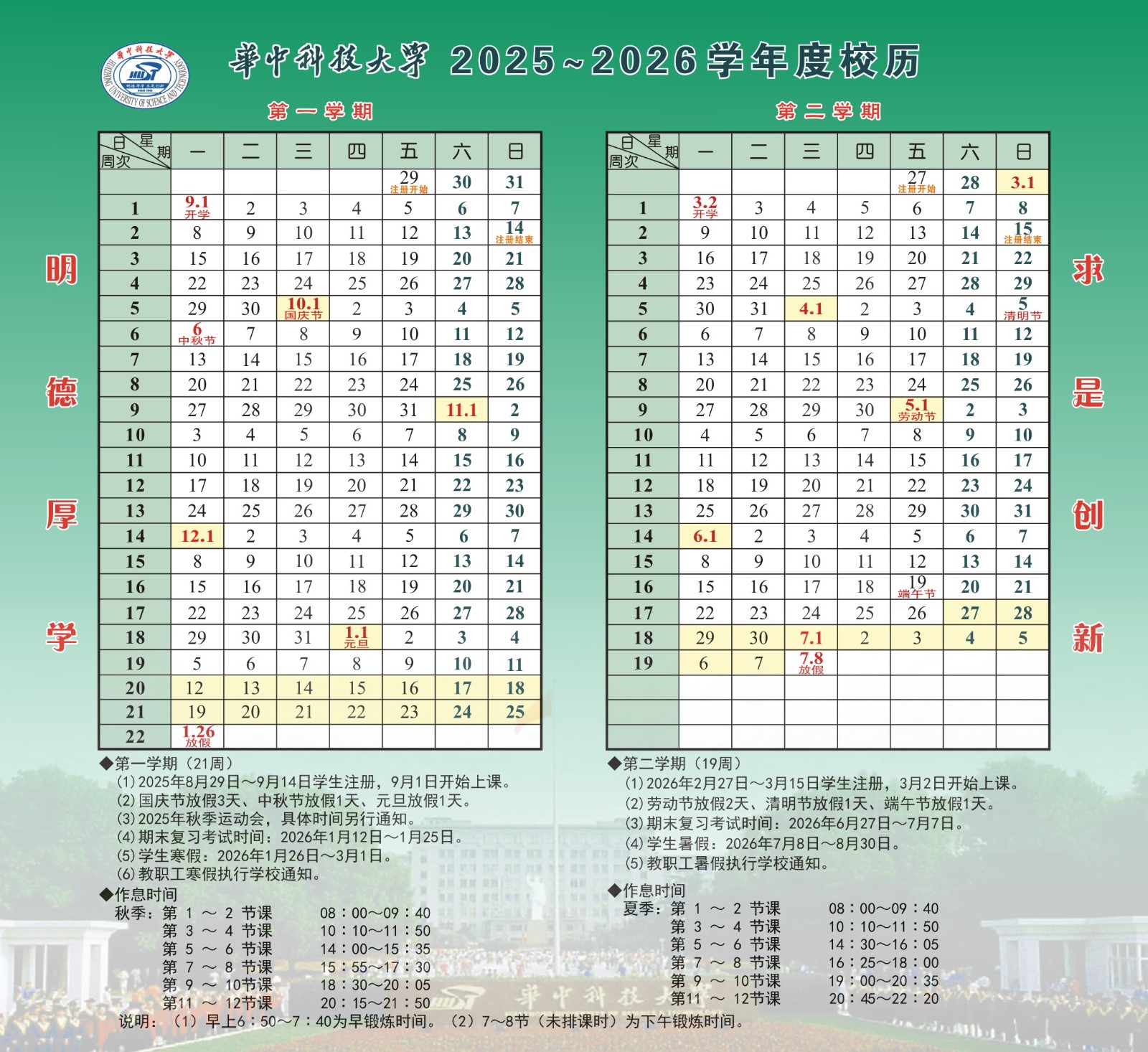 1.学校日历、上课时间及说明